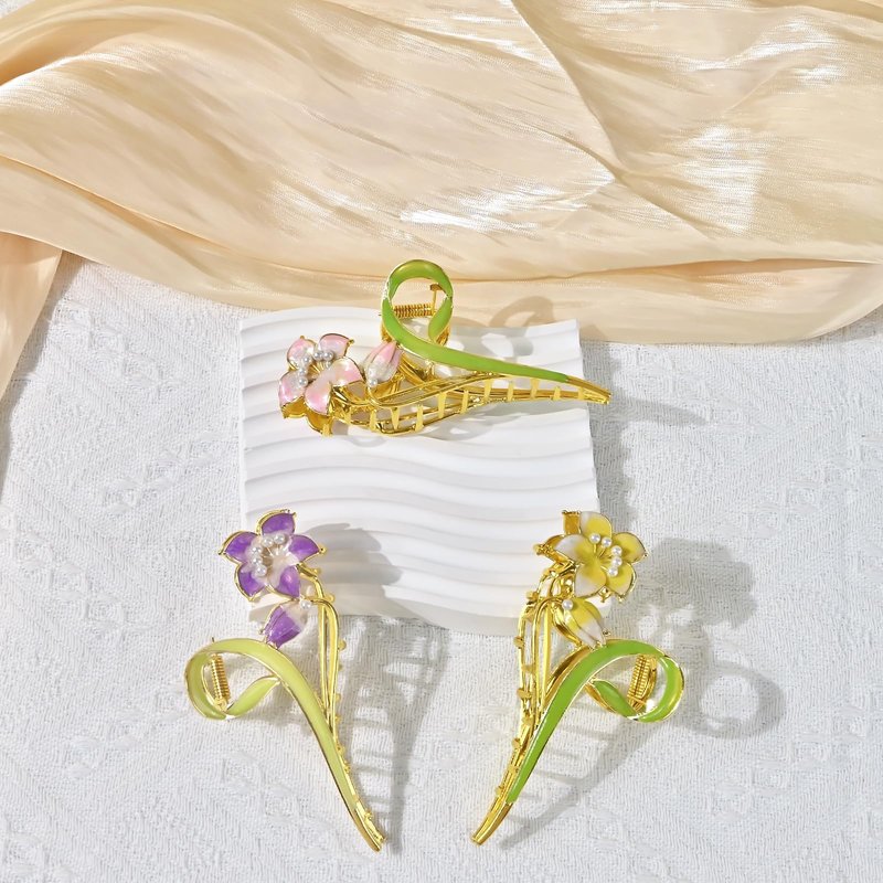 Yonchic 3-Piece Floral Metal Hair Clips, Lily Flower Hair Claw for Thin/Medium Thick Hair Claws, Elegant Barrettes Strong Hold Hair Clamps Non Slip Cute Hair Catch Clip Accessories (3-Color Lily)