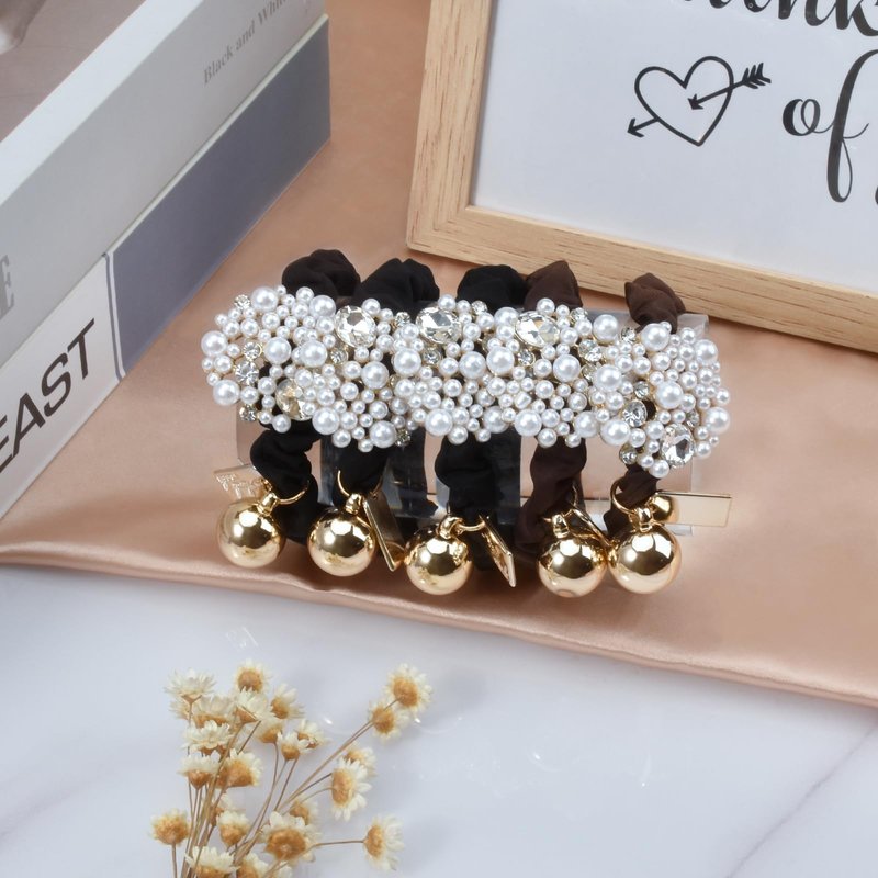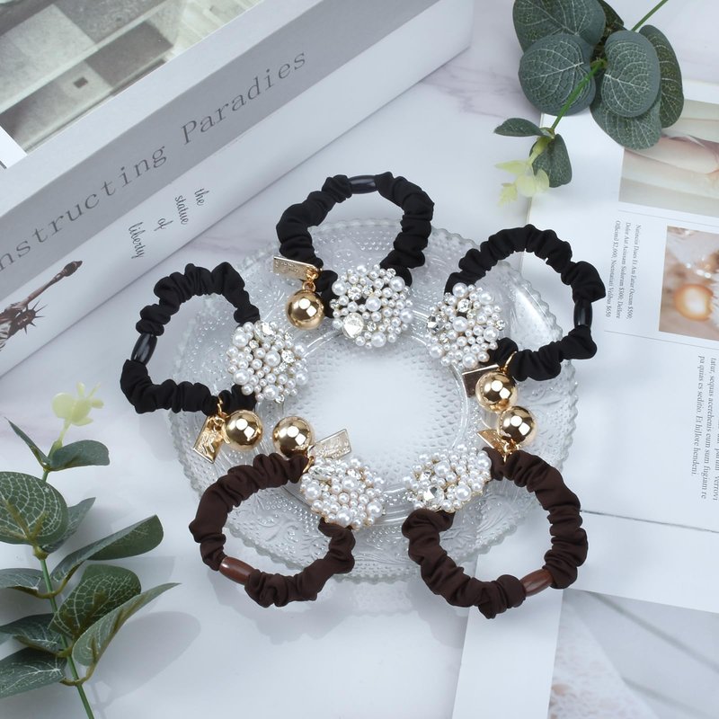 - Fashion Mixmatch: Set of 5, Made of Pearl Handmade that wears and washes great time after time. The Scrunchies surface of this hair band is inlaid with pearl and Rhinestones. They are stretchy, soft, comfortable and best of all, durable! The scrunchies are carefully sewn and made to last.