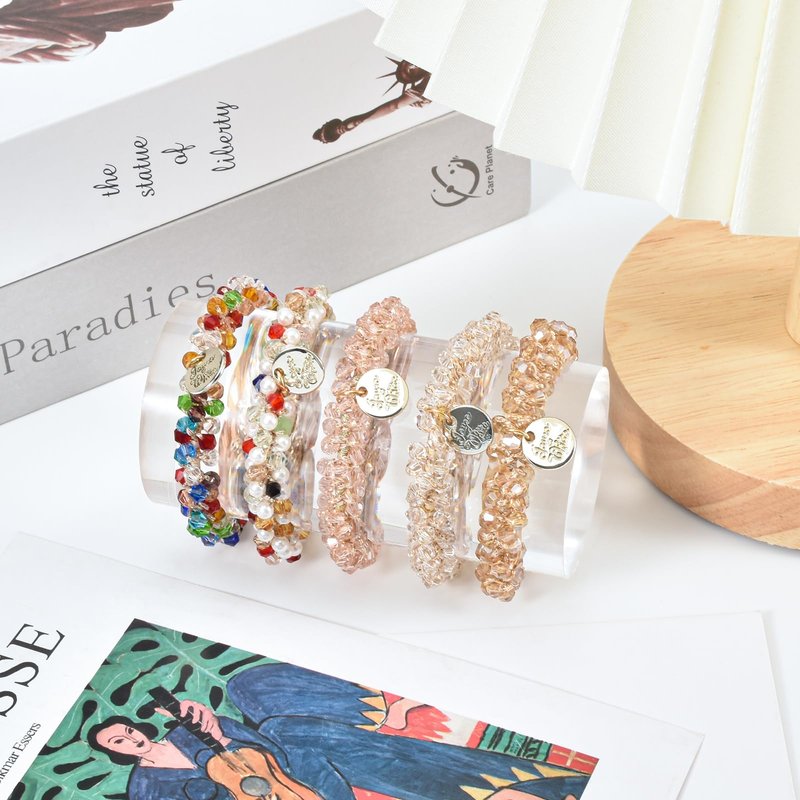 - Fashion Mixmatch: Set of 5, Made of pearl & rhinestones with great quality handmade rubber that are able to wear and wash great time after time. The Scrunchies surface of this hair band is inlaid with rhinestones. They are stretchy, soft, comfortable and best of all, durable! The scrunchies are carefully sewn and made to last.