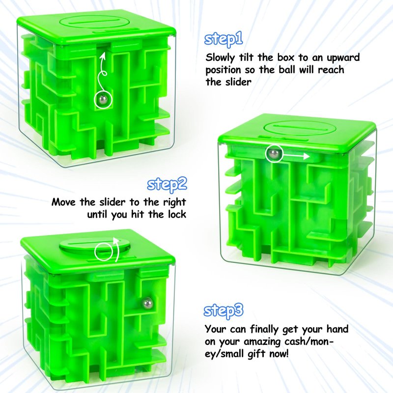 - How to Play: Once you put money in a maze puzzle box, the only way to get it out is to solve the maze first. Guide the ball through the maze to the exit, push the slide bar, open the lid, and retrieve your prize. Patience is the key to claiming your prize, and these puzzle boxes can be reused many times.