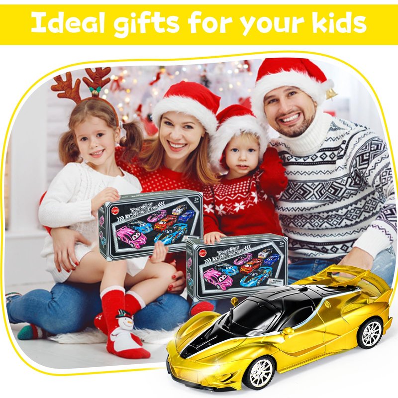 - Design Remote Contonl Car for Kids: This rc car has bright gold colors,LED light for boys girls make rc car more cute or cool!Realistic race looks, Can provided Super realistic driving experience for kids, We believe that every boys or girls would want to have a remote control car exclusively for oneself, as choose making perfect gifts for Birthday Christmas Car Toys for 3-7 Year old boys.