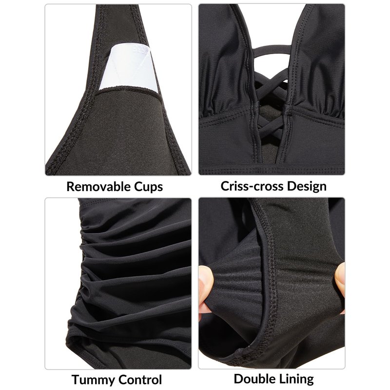 - Plus Size Swimsuit: This sexy one piece swimsuit features push up removable padded bras, adjustable criss-cross shoulder straps, and a high waistline that can gather your breasts together for better support.