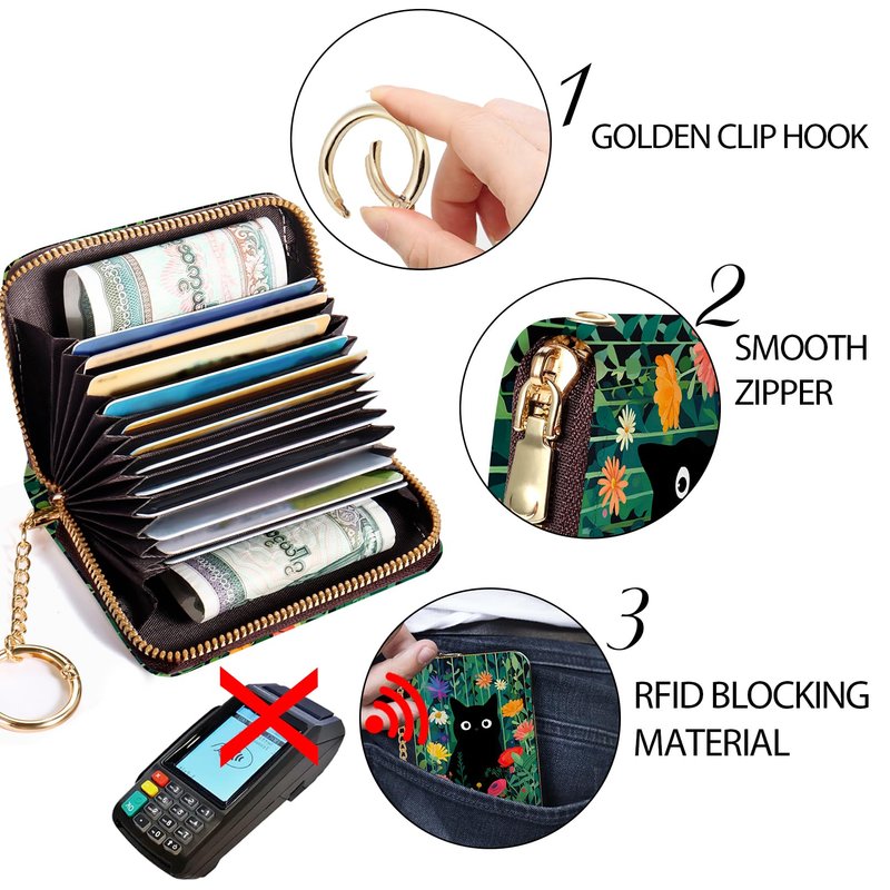 - RFID wallet for women makes your credit card and ID card from unauthorized scanning. RFID Blocking technology ensures the security of your personal information, providing a reliable experience for your cards.