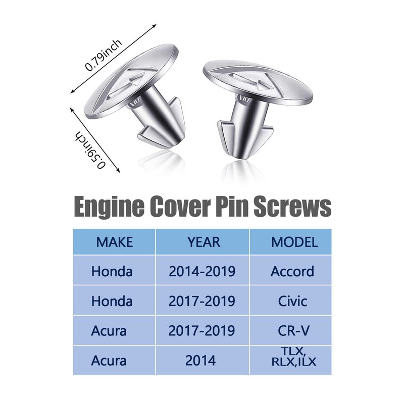 - 🚕 Wide Applicability: The lower engine cover bolt pin screws and clips are compatible with Honda Civic, Accord and CRV. Such as Honda Accord 2014-2019, Honda Civic 2017-2019, Honda CR-V 2017-19. Note: Please check the size of your car's corresponding part model before buying to avoid an unpleasant shopping experience.