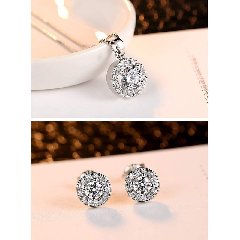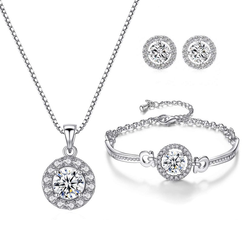 YooAi Jewellery Set Round Pendant Necklace Earrings and Bracelet Set Cubic Zirconia Jewellery for Women Round Silver
