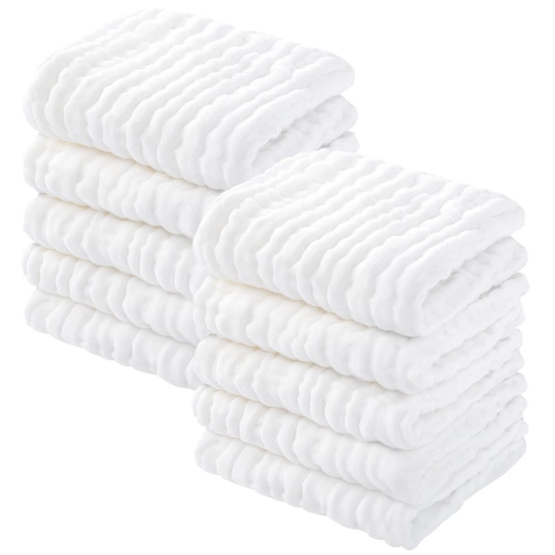 Yoofoss Muslin Baby Washcloths 100% Cotton Face Towels 10 Pack Wash Cloths for Baby 12x12in Soft and Absorbent Baby Wipes (White)