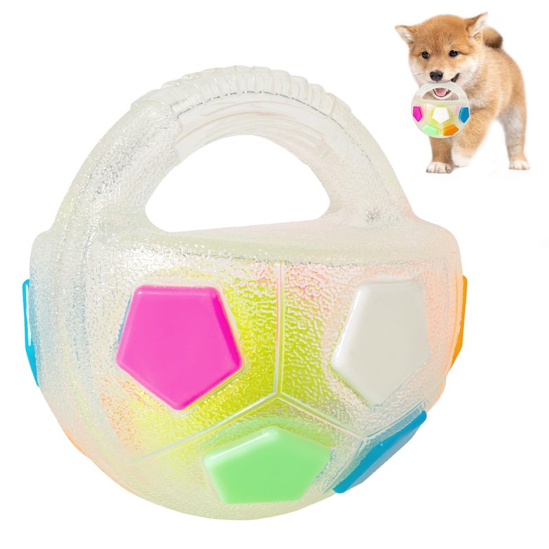 - The circle handle doesn't affect it rolling like a football, it is perfect for dogs of all sizes who love retrieving balls.