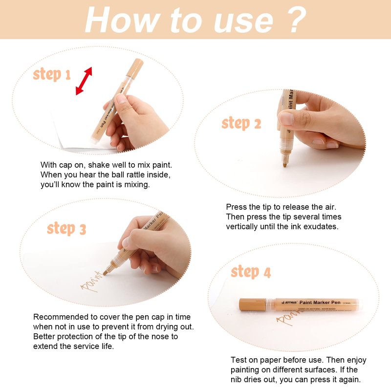 - 【Purchase without risk】Please pull off the cap directly, do not rotate it, rotating the head may cause ink leakage. If you have any product problem or no satisfied with paint pens, please contact via the buyer-seller message.
