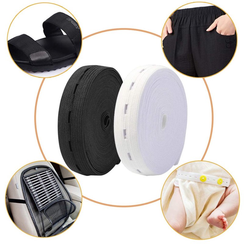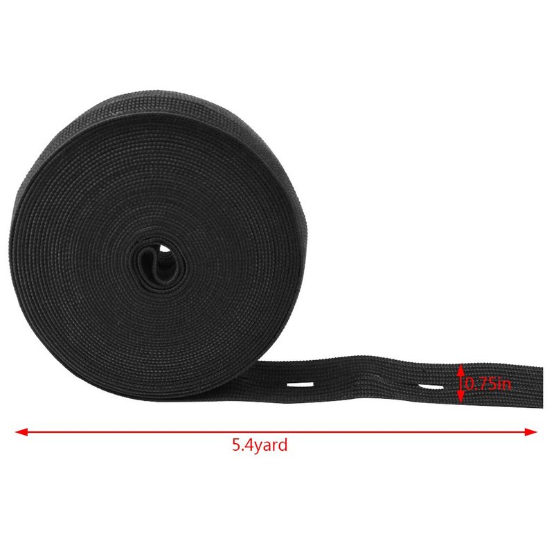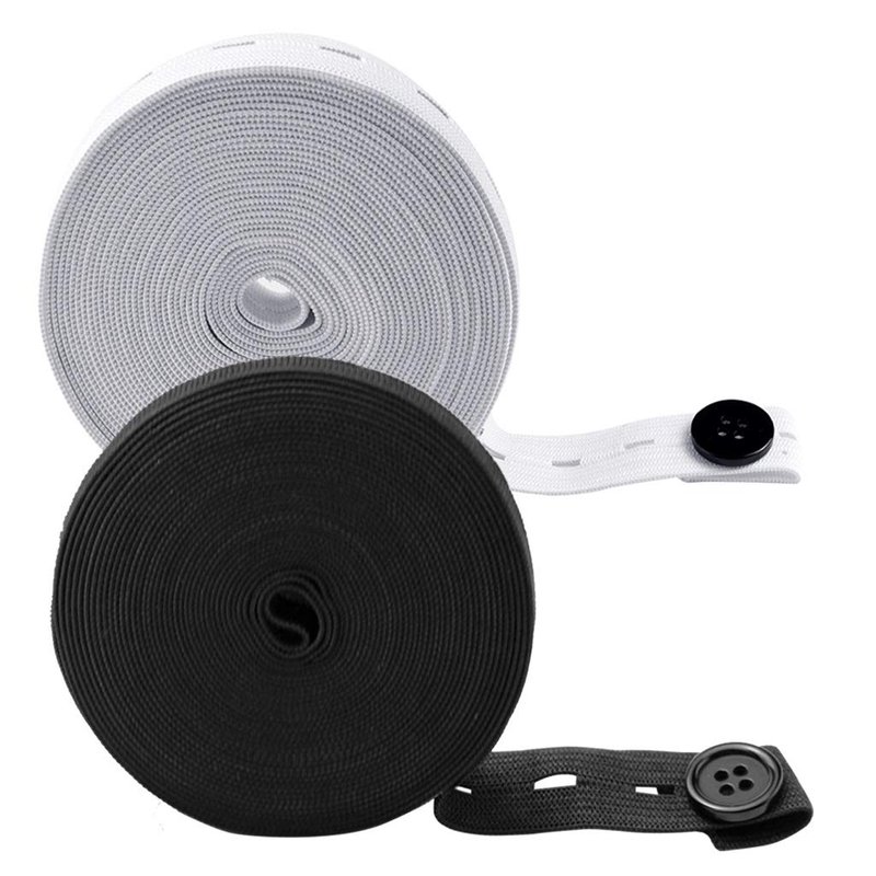 - PACKAGE INCLUDING: 4 Rolls sewing elastic band with holes, each roll 5.4 yard long. 2 Rolls in black with 0.75 inch width. 2 Rolls in white with 0.75 inch width. 100 pieces black resin button in 18 mm diameter. Different colors can meet your various needs.
