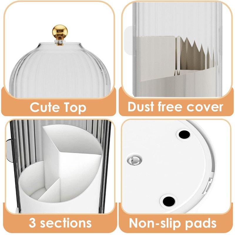 - 【Rotatable base with protective pad】:360° rotatable base, switchable to your favorite angle for easy use and good-looking placement. Package includes 4 round silicone patches that stick to the 4 support feet on the bottom of the makeup brush organizer to keep it stable.