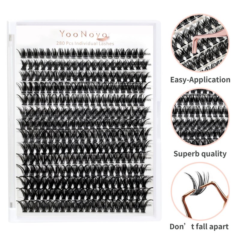 - 【DIY individual clusters at home】: Achieve salon-quality lashes at home with our YOONOYA Lashes cluster extensions. With 280 clusters in one tray, you can easily create your desired look. These lightweight and fluffy lashes are perfect for lash enthusiasts looking to save money and time by doing their own lash extensions.