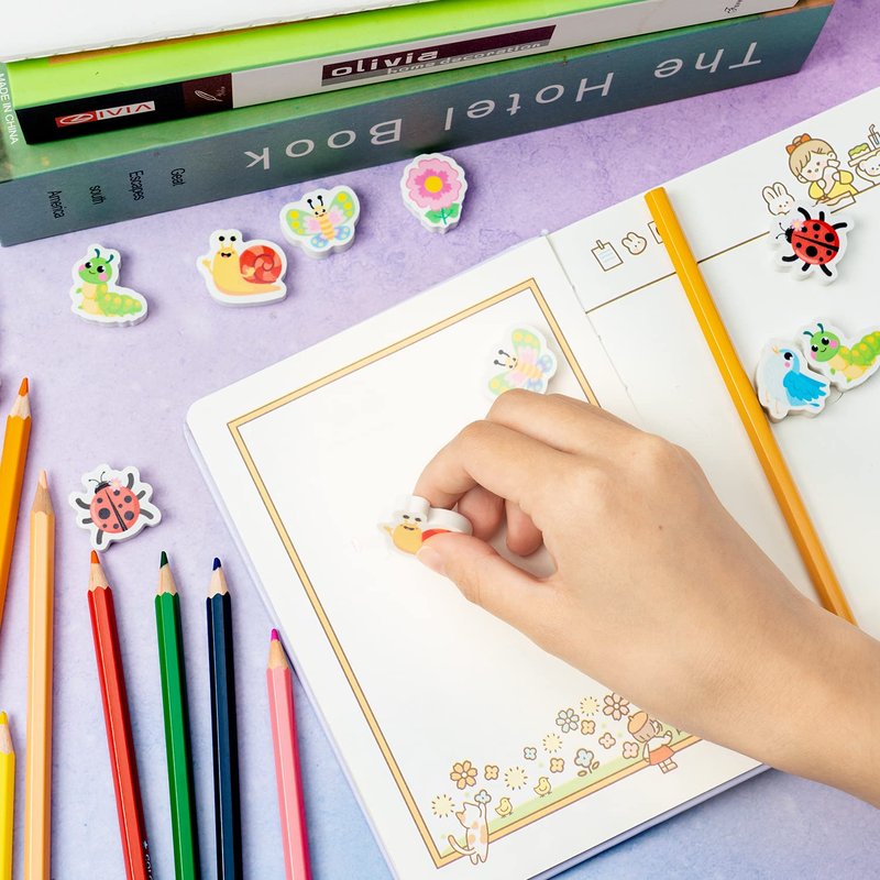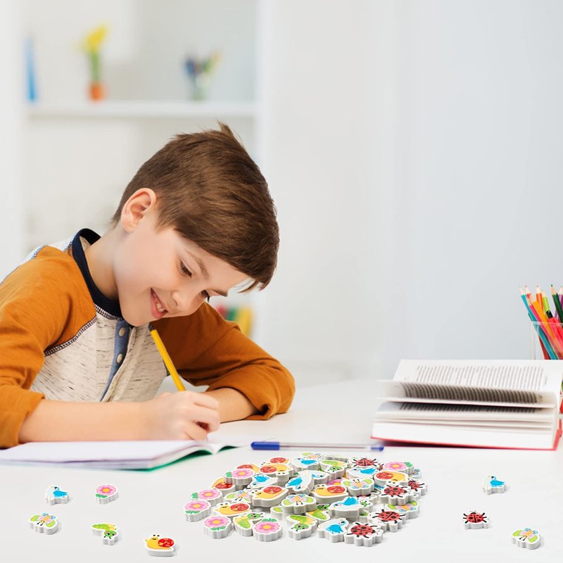 - CUTE ERASERS: Our erasers are designed with cute summer elements, including snails, butterflies, flowers, birds, ladybugs and caterpillars, which are vivid and fun. This eraser can add more fun to children's learning.