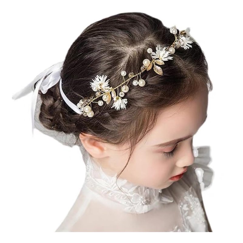 YoralCrea Flower Girl Headpiece Princess Crystal Wedding Headband Baby Girls Flower Crown Pearl Hair Accessories for Birthday Party (gold 2)