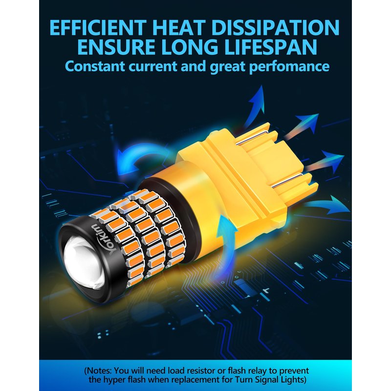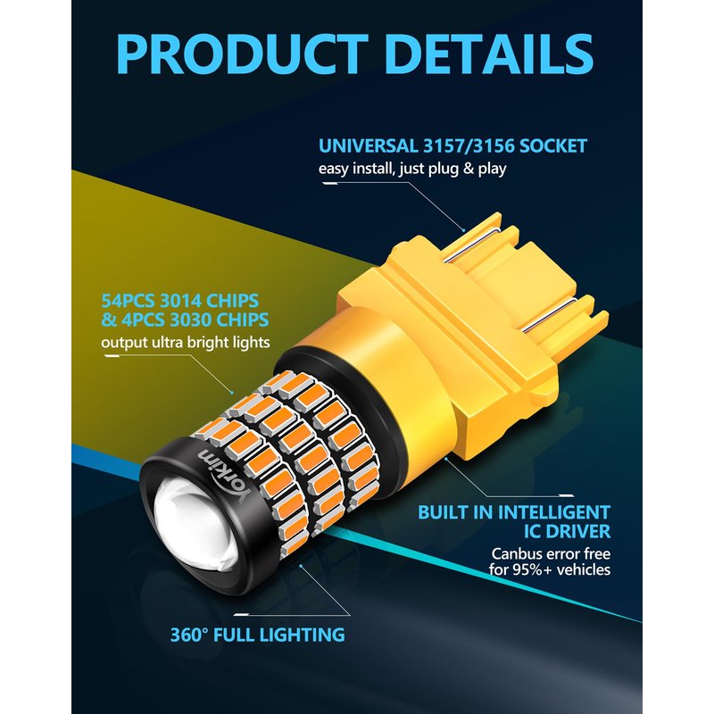 - 【Ultra Bright】Yorkim 3157 Led Bulbs Amber are built in Constant Current IC driver, powered by 54smd 3014 and 4smd high performance 3030 chipsets to offer 300% brightness than OEM halogen bulbs and give a refreshed look to your vehicle