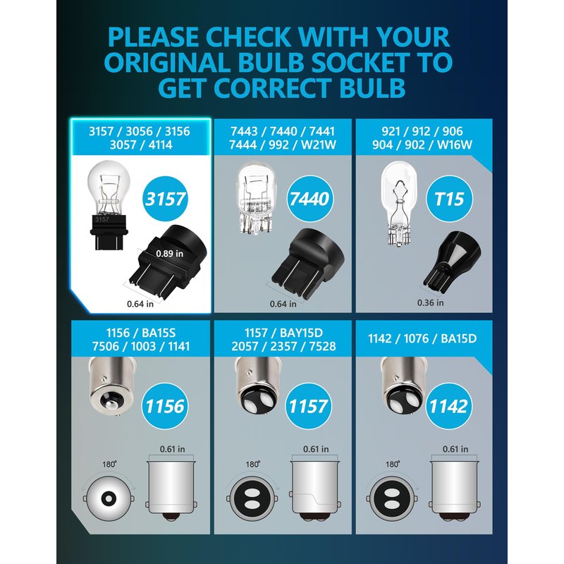 - 【Easy to Install】This 3157 led bulb amber is plug and play. Non-Polarity design. Simply plug the bulb in and you are all set! **ATTENTION**: The bulb size may vary between trim of your vehicle. Please double check owners manual or original bulb number to confirm before placing an order. Please feel free to contact us if any problem