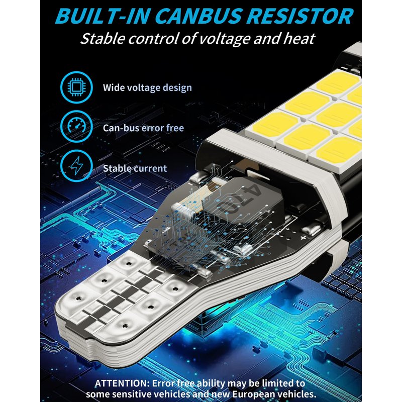 - 【ERROR FREE】Yorkim T15 LED Bulbs equipped with CANBUS driver to bypass error check for most cars. Built-in intelligent IC driver create better performance