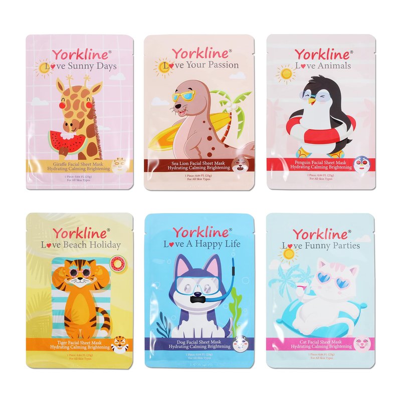 - Funny Facial Mask: Looking for a fun way in your skincare routine? Each facial mask pack contains 6 cute animal characters enjoying beach holidays, including 1 dog, 1 cat, 1 tiger, 1 sea lion, 1 penguin, and 1 giraffe