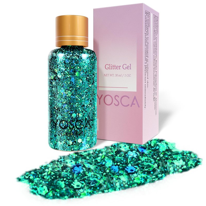 Yosca Body Glitter Gel, 30ML Green Mermaid Face Glitter, Cosmetic Grade Hair Chunky Glitter Lotion for Stage Themed Makeup Mardi Gras Christmas St Patrick Rave Accessories - Lucky Dating