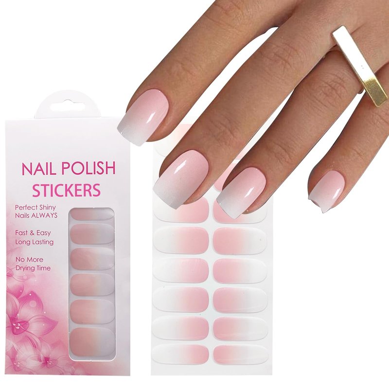 YOSOMK Gel Nail Strips, Long Lasting Gel Nail Stickers, UV Free, 16 Gradient Pink Waterproof Nail Wraps, Nail Polsih Stickers for Women, Includes 1 Wooden Stick and 1 Nail File