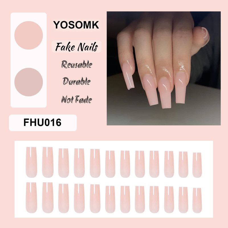 PRODUCT INSTRUCTION: YOSOMK Extra Long Glossy Press On Nails, Coffin False Nails,Ballerina Full Cover Artificial Nail,Acrylic French Nail for Women&Girls,24PCS â„ Material: ABS material â„ Quantity&Size: 24 pieces,12 sizes â„ Shape:Extra long style How to use: 1.Clean your nails. 2.Choose the perfect size for your nail. 3.Apply glue(not included)or nail glue stickers(included)on the nails. 4.Press and hold the fake nails for 10-15 seconds. 5.Finish! Now feel free to trim or file them if needed. How to remove: 1.Put your hand in warm water for 2 minutes. 13.Using a wooden stick that comes with the package to remove residual glue or stickers -Do not remove it abruptly which may hurt you fake nails. Warming tips: -Nail glue may damage false nails during peeling or applying,double-sided adhesive tabs are more friendly to fake nails. -Color may show differently due to different screens.