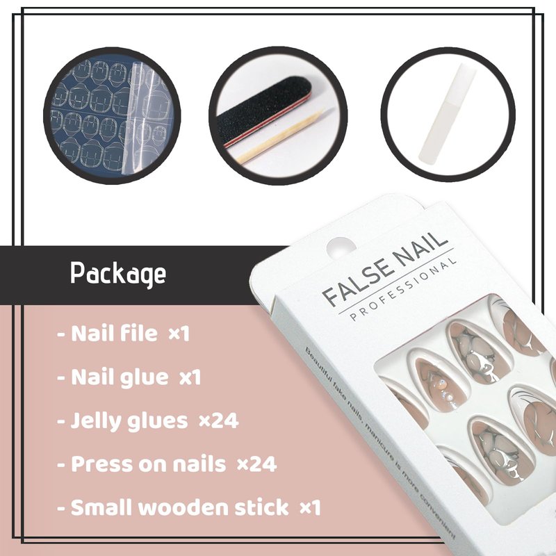 - 【Package Contains】:A box contains 24 fake nails, a nail file and 24 jelly glues, the fake nails are divided into 12 different sizes, it is convenient for you to choose the fake nails that suit your nail.