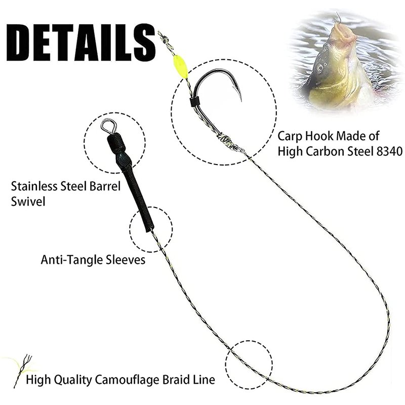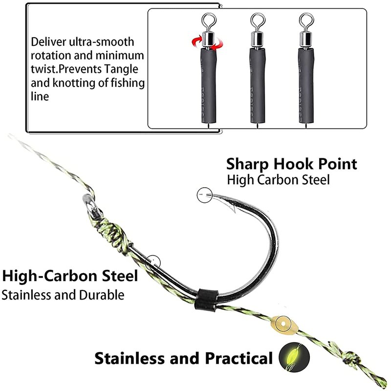 - NO KNOT PULLING: The fact that the hair rig assemblies are delivered ready tied with swivels and hooks saves you a lot of work on the water and you can start fishing straight away.