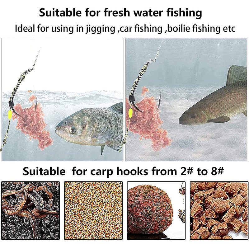 - BIG CARP TERMINATOR:Whether you want to fish for big carp or more carefully, small carp hooks from #8 to large #2 have been used to be as flexible as possible. Match with almost 16-18mm carp Baits.