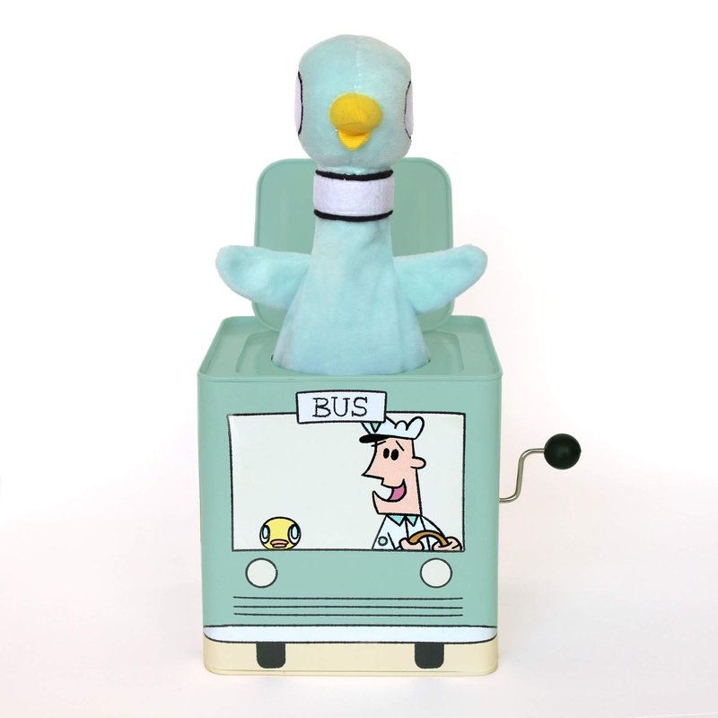 - Traditional musical Jack-in-the-Box with delightful modern twist of The Pigeon