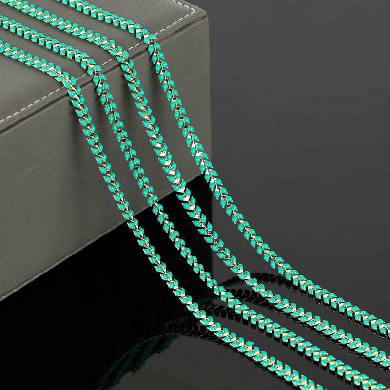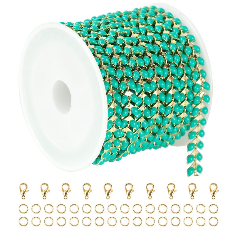 YOUBEIYEE 9.8 Feet Gold Plated Brass Chains Bulk Bluish Green Enamel Arrow Cable Jewelry Chain for Jewelry Making with Jump Rings and Lobster Clasps Jewelry Supplies