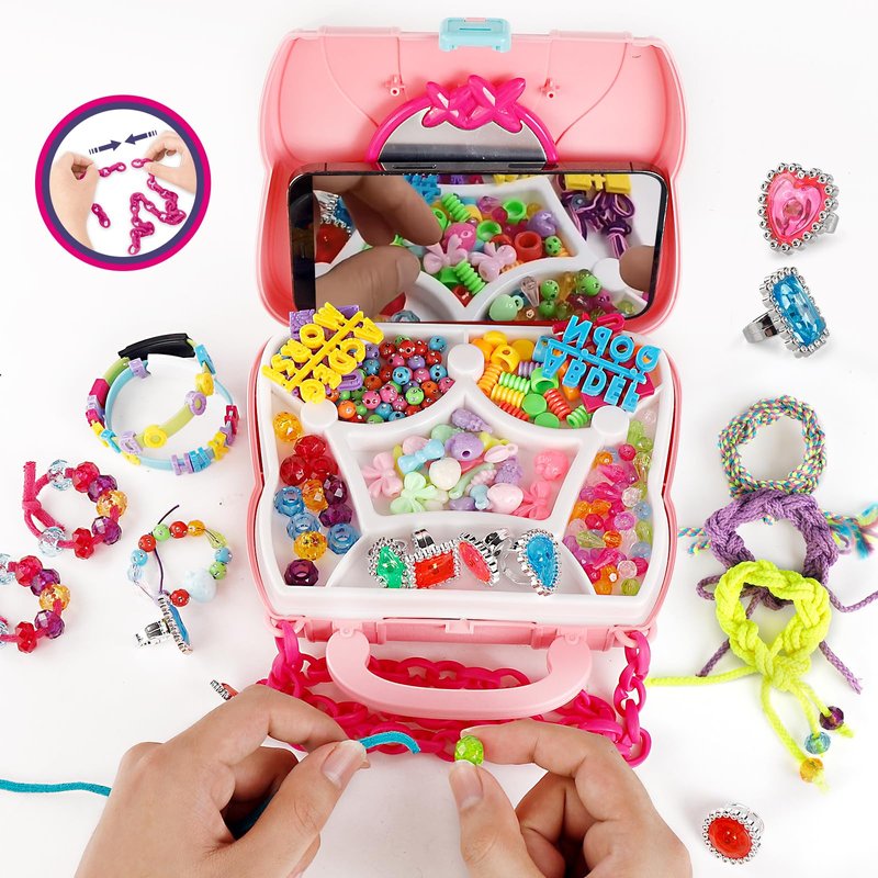 - Packaging include: 1 portable handbag,1 mirror,1 braider,14 bracelet threads in 4 styles,5 bags of different styles of beads and letter beads,1 instruction of bradider and letter band.All in a beautiful box, great gifts ideas for girls.