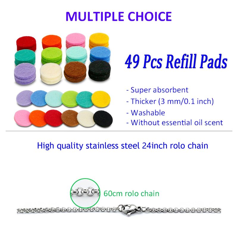 - ❤SIZES❤: Essential oil diffuser necklace pendant sizes:30mm*30mm*7mm, Diameter: 30mm, Inner diameter: 23mm,come with 24"(60cm) rolo chain.