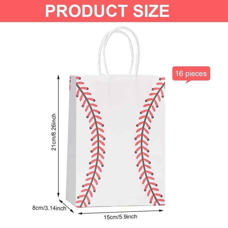 - Exquisite Designs: This set contains a total of 16 bags. The size of each gift bag is 5.1*3.1*9.4in, with Carry hand, designed by a professional design team, which is very suitable for holding various items. To create a strong atmosphere and bring you a very good baseball party experience.