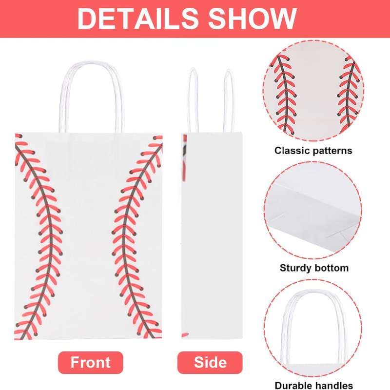 - Perfect Quality: Perfect thickness and high-quality kraft paper packaging, strong bottom design, durable and not easy to break, not easy to fall off, making the packaging bag more delicate and beautiful.The baseball goodie bags smooth surface, beautiful pattern can be applied to a variety of occasions.