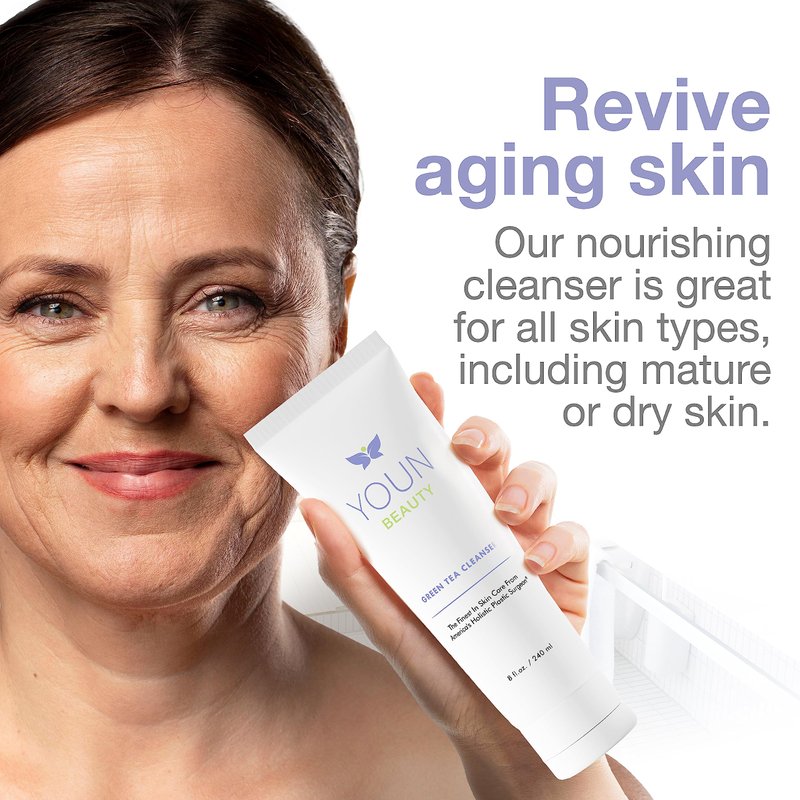 - GENTLY CLEAN & REVITALIZE SKIN – Infused with antioxidant-rich green tea and moisturizing extracts, YOUN Beauty cream cleanser penetrates deep into the skin to remove water-based impurities without drying out your skin, leaving it feeling refreshed and hydrated