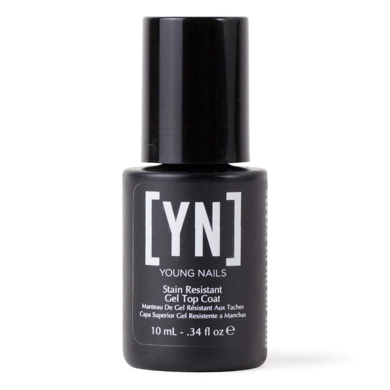 - Stain Resistant - Young Nails Stain Resistant Gel Top Coat is designed to keep your nails stain free, even when handling hair dyes or other substances that can cause staining. Perfect for hair stylists to ensure their manicure stay shiny and stain-free when handling chemicals and dyes. Grade - This top coat gel nail polish is professional grade, providing strong protection for your nail enhancements. Perfect for professional nail techs, beginners, or DIY nails at home.