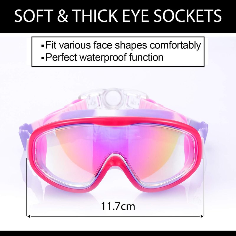 - THICK EYE SOCKET, COMFORTABLE & WATERPROOF: The wide & thick silicone eye socket can fit all children's faces, which provides perfect waterproof & comfortable wearing experience