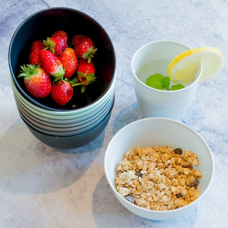 Plastic Small Bowl: 9 Pack 10 oz plastic bowls in 9 urban colors.