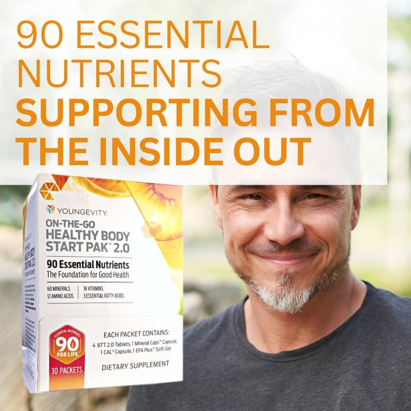 Youngevity On-The-Go Healthy Body Start Pak 2.0 - Includes Multi-Vitamins, Minerals, EFAs, & Amino Acids | 90 Essential Nutrients | 30-Day Supply