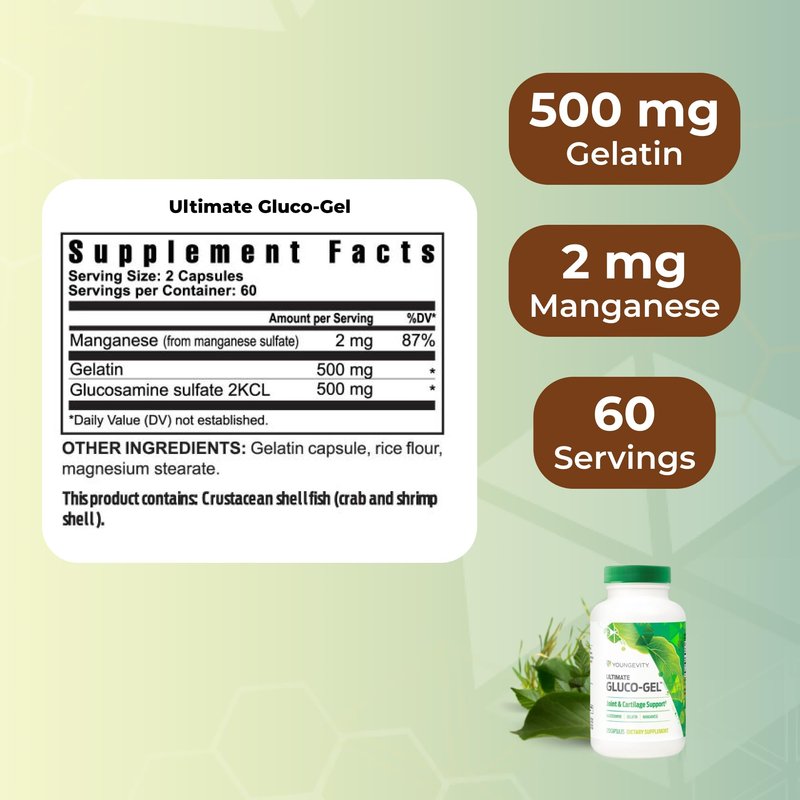 Youngevity Ultimate Gluco-Gel™ – Joint and Cartilage Support Supplement with Glucosamine Sulfate and Gelatin – 120 Capsules