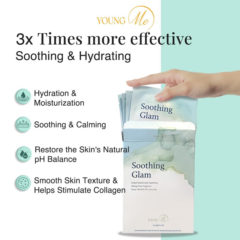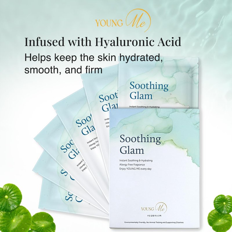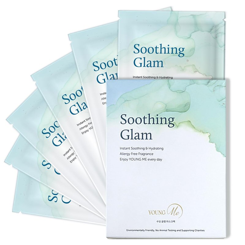 YoungMe Soothing Glam Korean Sheet Mask Pack - Soothing & Hydrating Facial Mask with Aloe Vera & Cica - Hypoallergenic Sheet Mask for All Skin Types | 25g x 6 sheet mask pouch set