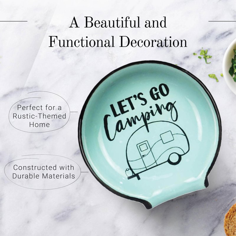Upgrade your kitchen counter decor with the Young's Inc. Spoon Rest, designed to keep your cooking utensils organized and your countertops clean. Measuring 4.72" L x 4.72" H x 0.6" H, this spoon rest is not only functional but also adds a touch of charm to your kitchen. The beautiful Let's Go Camping design makes it a perfect addition to any kitchen. Our spoon rest is dishwasher safe, making it easy to clean and maintain. Whether using a ladle, spatula, or coffee spoon, the Young's Inc. Spoon Rest has got you covered.