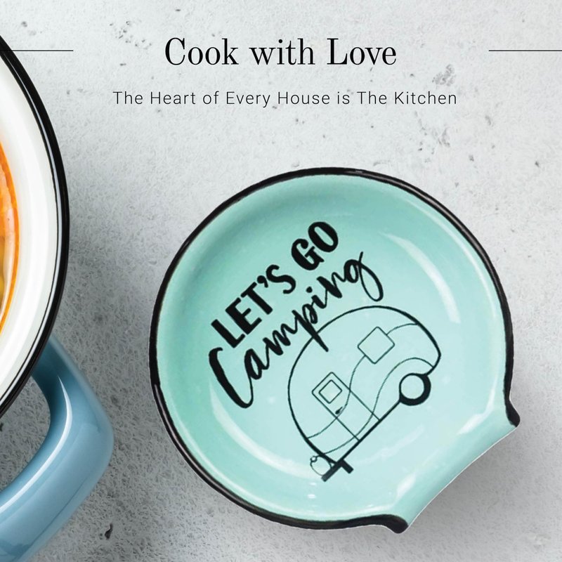 Young's Inc. Spoon Rest for Stove Top and Kitchen Counter - Ceramic Spoon Holder - Durable and Easy-to-Clean - Can Hold Ladles, Spatulas, Tea Bags, and More - Stylish Camping Design - 4.72x4.72x0.6