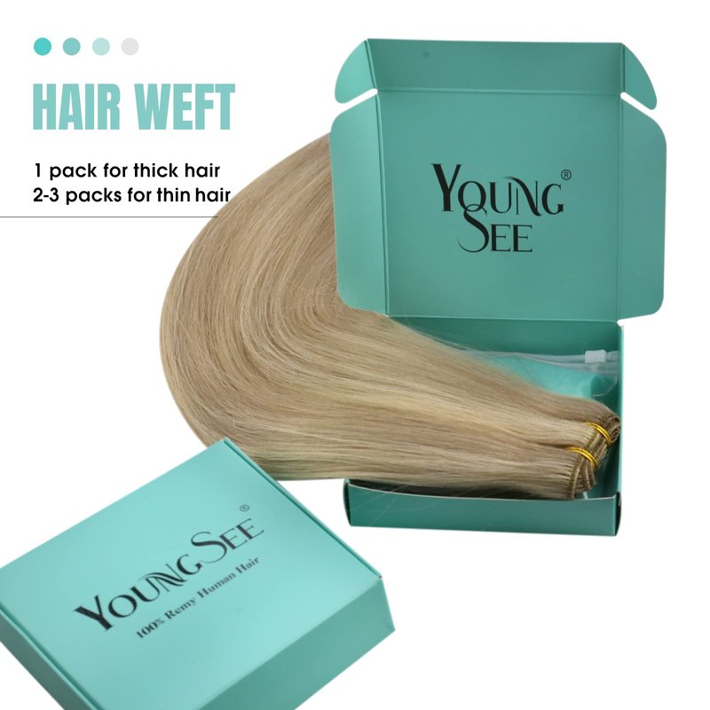 Youngsee Human Hair Wefts don't contain any attaching parts, you can sew in, micro link in, clip in or tape in as you like. YoungSee Human Hair Weave is produced with remy human hair, which is soft, shiny, silky and tangle-free.Great for adding instant length, a full volume, and owning a charming healthy hair flow.