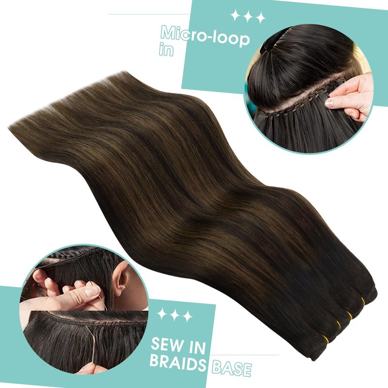 - Multiple Attachment Methods: Our hair extensions offer versatility - sew in, clips, glue or micro ring. We recommend professional installation at a salon. Unlike traditional hand tied weft, our machine-made extension can be freely cut and adapted