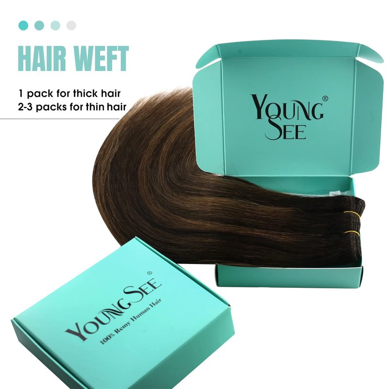Youngsee Human Hair Wefts don't contain any attaching parts, you can sew in, micro link in, clip in or tape in as you like. YoungSee Human Hair Weave is produced with remy human hair, which is soft, shiny, silky and tangle-free.Great for adding instant length, a full volume, and owning a charming healthy hair flow.