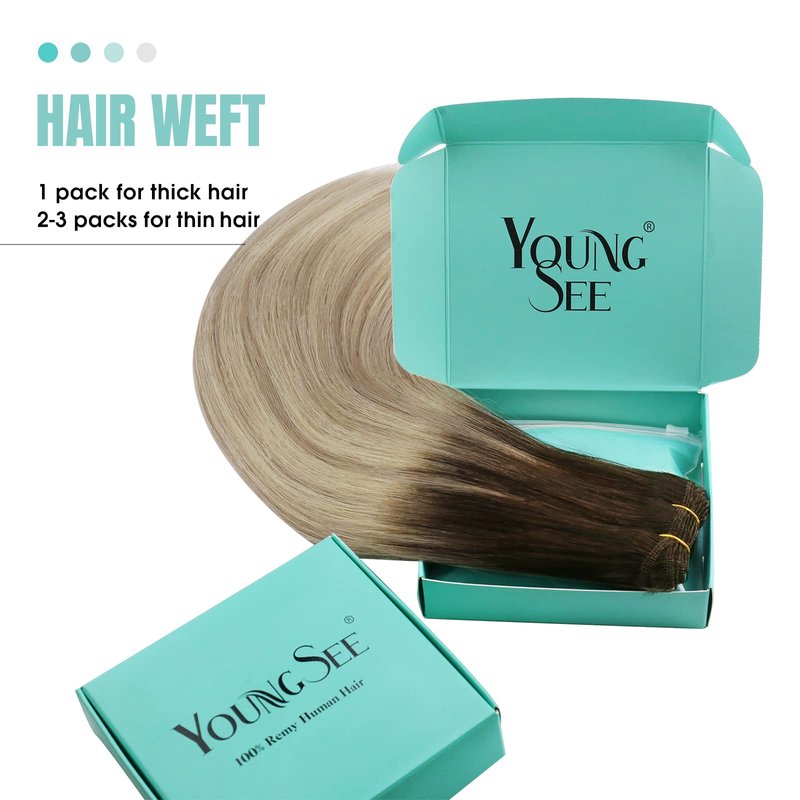 Youngsee Human Hair Wefts don't contain any attaching parts, you can sew in, micro link in, clip in or tape in as you like. YoungSee Human Hair Weave is produced with remy human hair, which is soft, shiny, silky and tangle-free.Great for adding instant length, a full volume, and owning a charming healthy hair flow.