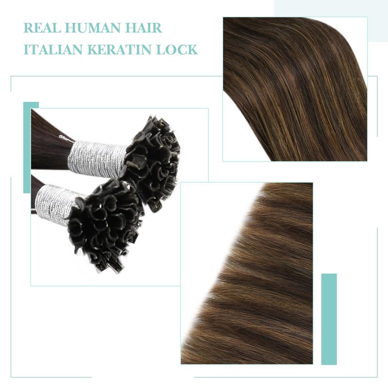 YoungSee U Tip Hair Extensions Real Human Hair Brown Balayage Utip Hair Extensions Human Hair Balayage Dark Brown with Brown U Tip Keratin Hair Extensions for Women Utip Extensions Ombre 20In 50s/50g