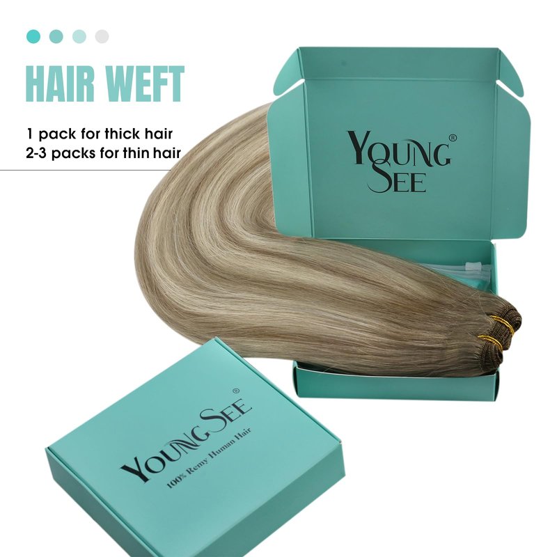 Youngsee Human Hair Wefts don't contain any attaching parts, you can sew in, micro link in, clip in or tape in as you like. YoungSee Human Hair Weave is produced with remy human hair, which is soft, shiny, silky and tangle-free.Great for adding instant length, a full volume, and owning a charming healthy hair flow.
