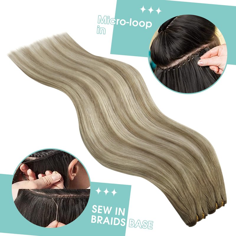 - Multiple Attachment Methods: Our hair extensions offer versatility - sew in, clips, glue or micro ring. We recommend professional installation at a salon. Unlike traditional hand tied weft, our machine-made extension can be freely cut and adapted