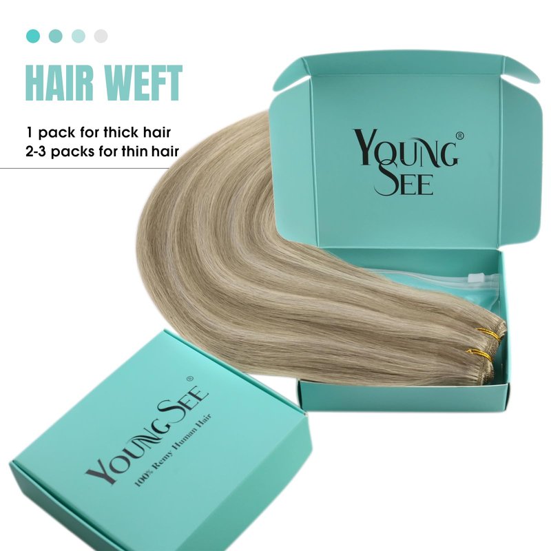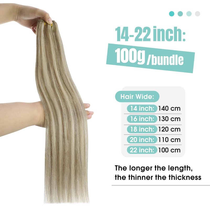 YoungSee Weft Hair Extensions Light Brown Highlight with Medium Blonde Hair Extensions Weft Hair Remy Human Hair Sew in Hand Tied Hair Extensions Hair Weaves 14inch 100g